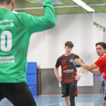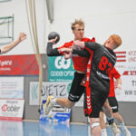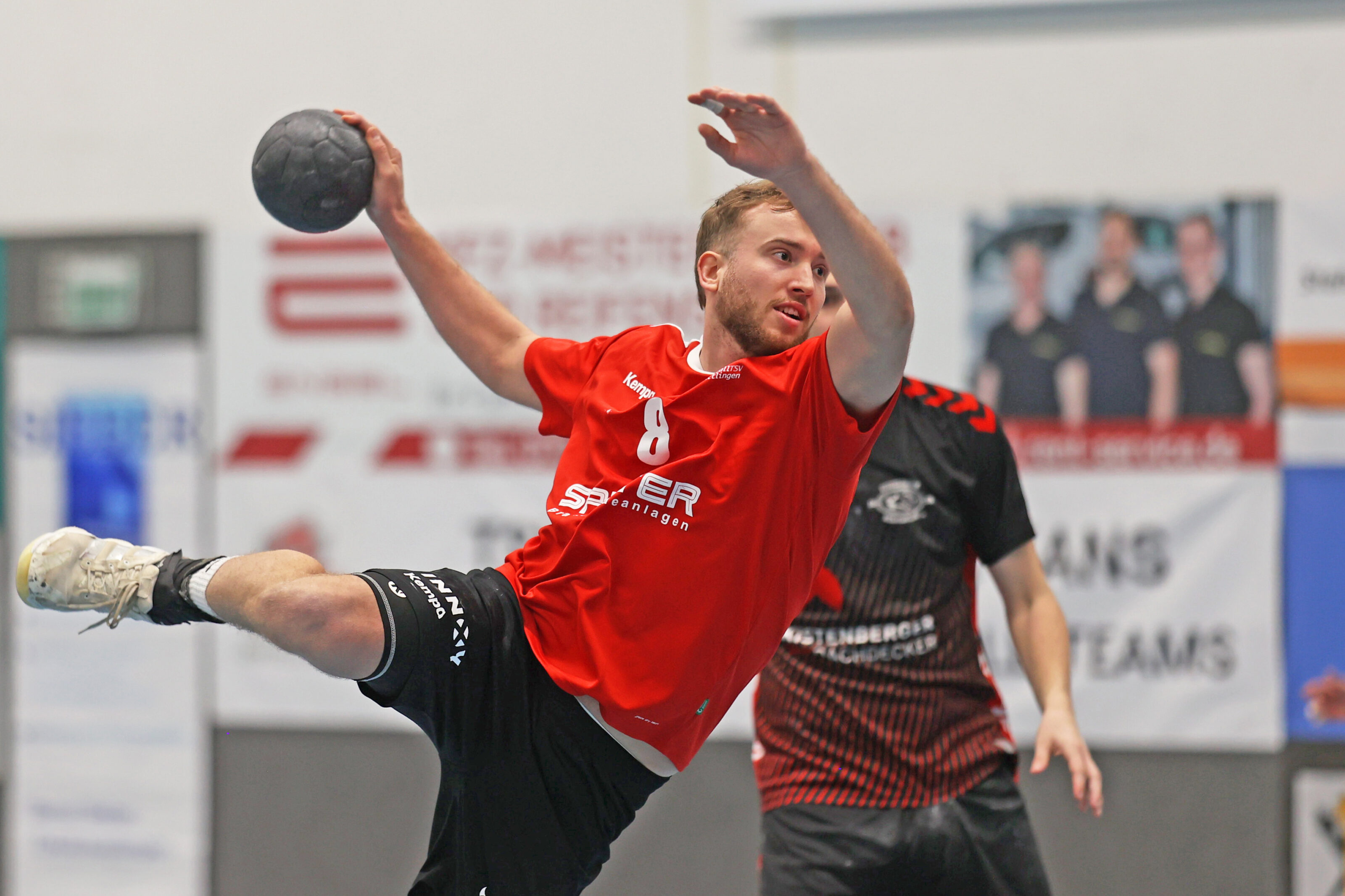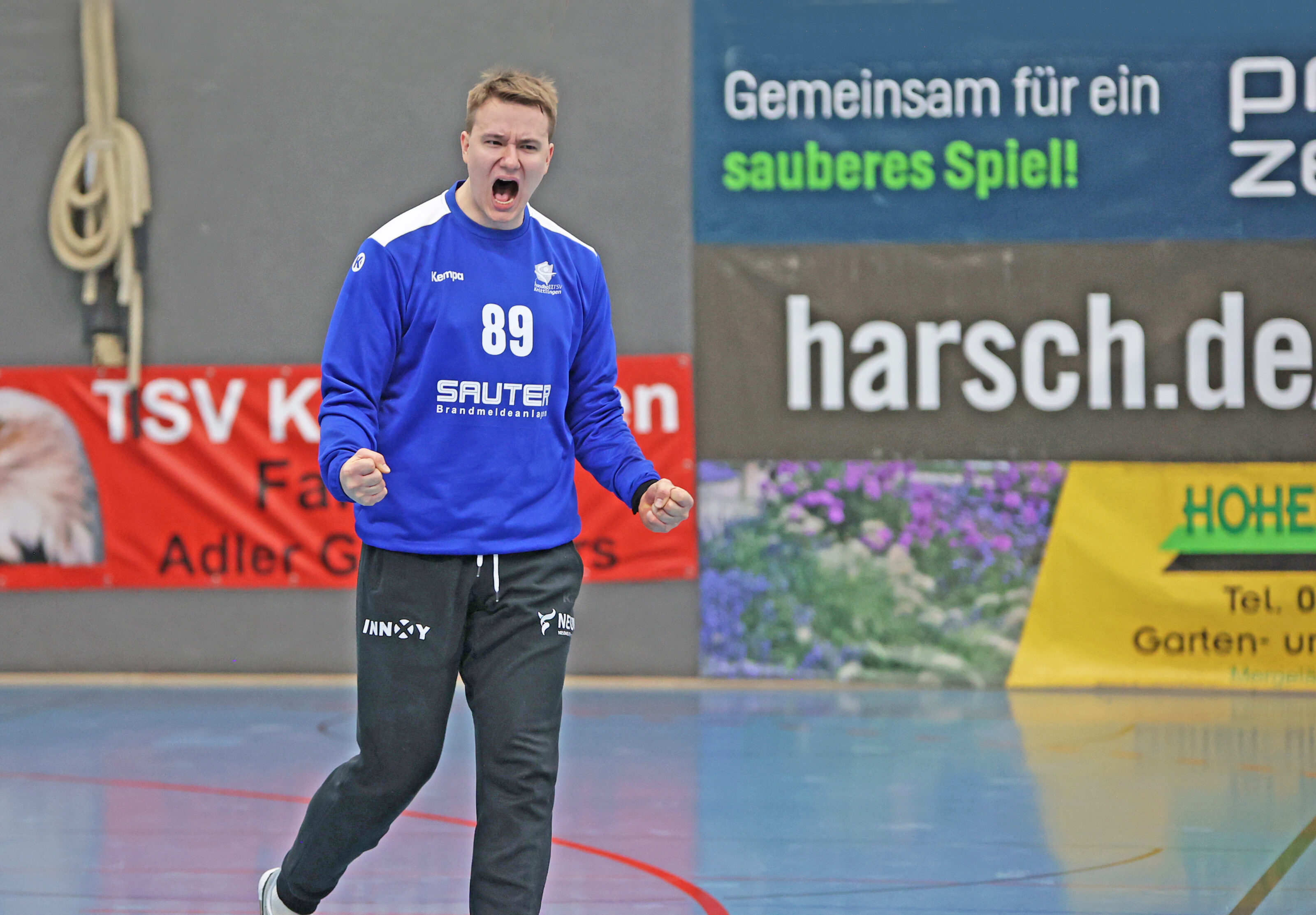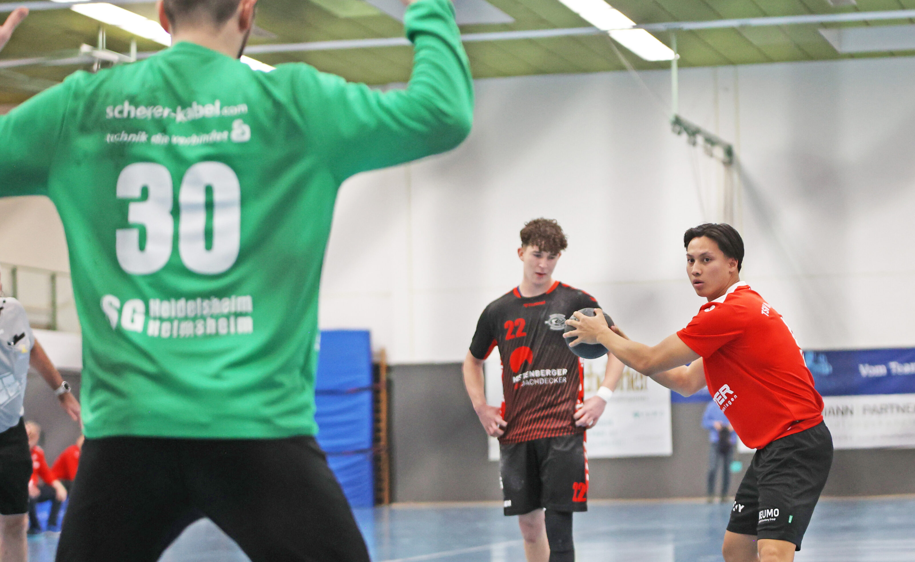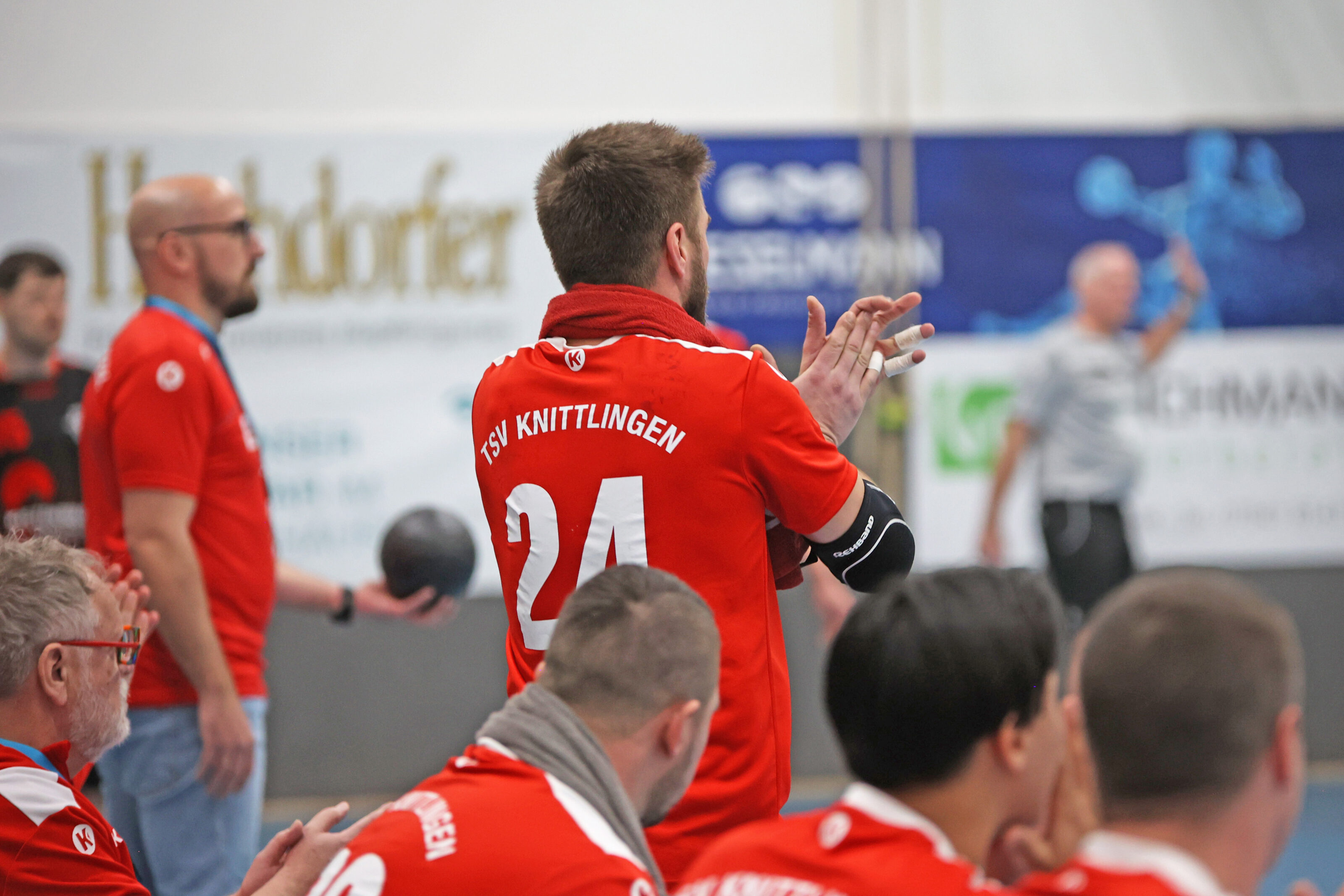 Vom Anspiel weg überrumpelten die Fauststädter den Meisteranwärter SG Heidelsheim/Helmsheim. Schnell führte Knittlingen mit 2:0. Nachdem 2:1 Anschlusstreffer der SG HH folgte dann furioser 8:0 Lauf des TSVK. Grundlage dafür war eine konsequente Abwehrarbeit im Rücken mit reaktionsstarken Torwart Sebastian Neff. Knittlingens Zuschauer trauten ihren Augen nicht und die Zuschauer der Gäste waren fassungslos. Es stand plötzlich 10:1 und in der 15. Minute 12:2. Knittlingen war in den Anfangsminuten in allen Belangen überlegen. Der „Underdog“ hatte zugeschlagen. Jetzt war natürlich die Frage, wie kommt der Absteiger aus der Baden-Württemberg-Oberliga aus dieser Situation heraus. Begünstigt durch insgesamt 5 Zeitstrafen im ersten Abschnitt für Knittlingen, gelang es der SG HH dann doch den Abstand etwas zu verkürzen. Vom 12:2 ging es zum 12:5, zum 15:8 und 16:10, drei Minuten vor der Pause. Knittlingen gelang zwar das 17:10, doch die SG HH hatte zum Abschluss der ersten Halbzeit einen 3:0 Lauf zum 17:13 Pausenstand. Es war dann für Knittlingen nicht bedrohlich, doch es wurde enger. Viele Zuschauer in der Halle hatten die Befürchtung, dass der Gast im zweiten Abschnitt besser ins Spiel kommt.