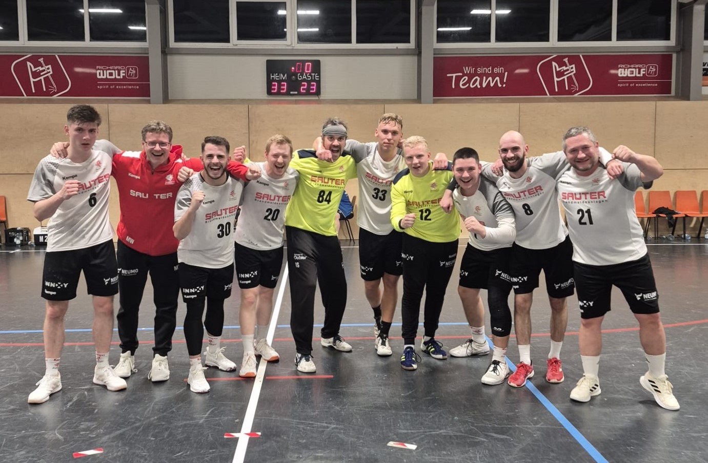 Durch einen ungefährdeten 33:23 Erfolg gegen die SG HCL 2 verteidigt die Knittlinger Zweite die Tabellenführung in der Bezirksliga oder anders gesagt: mit dem Minimalprinzip zum Erfolg. Durch den Ausfall einiger Akteure zeigte sich Trainer Bernd Zimmermann flexibel, zog das Trikot an, schnürte noch einmal seine Handballschuhe und griff in den Harztopf – und war somit der einzige Feld-Auswechselspieler an diesem Tage.