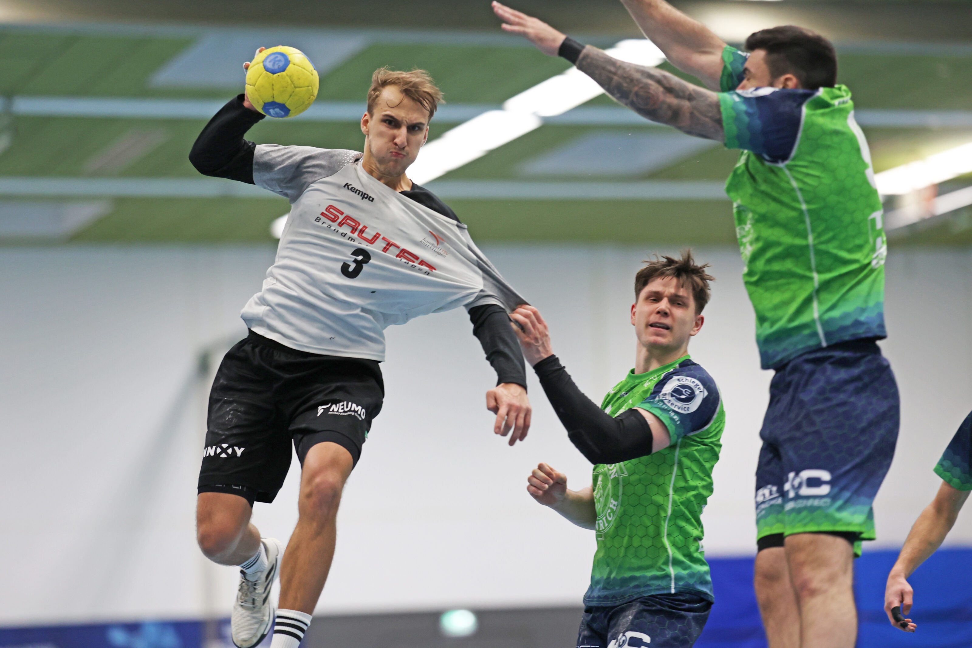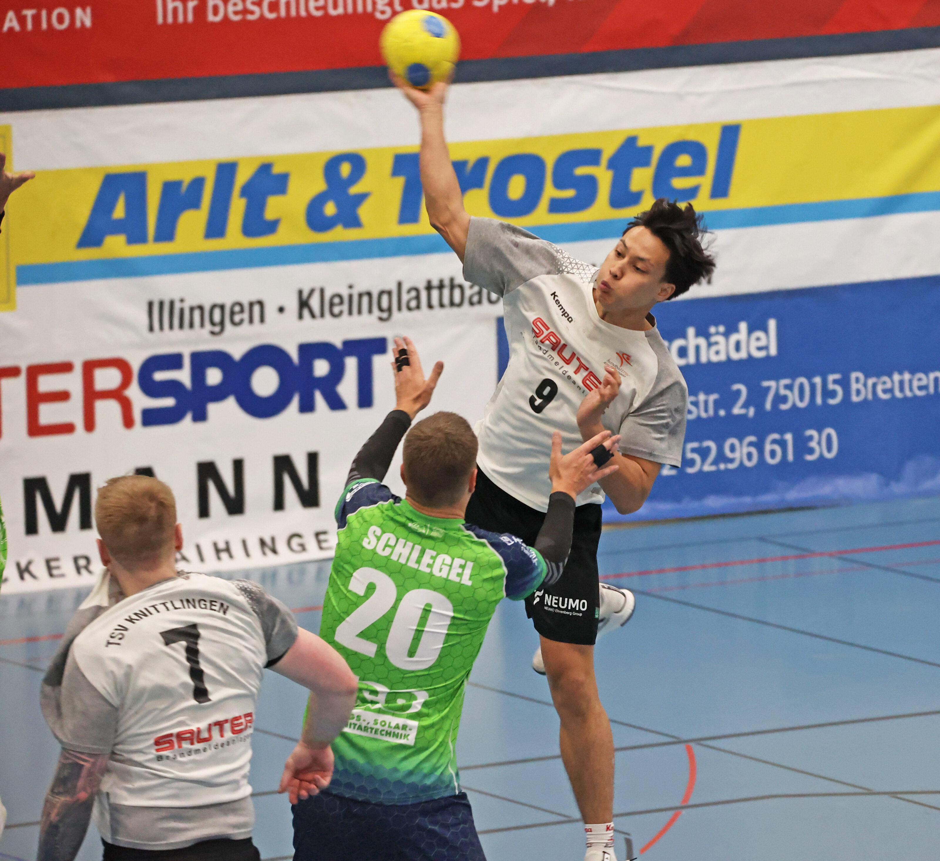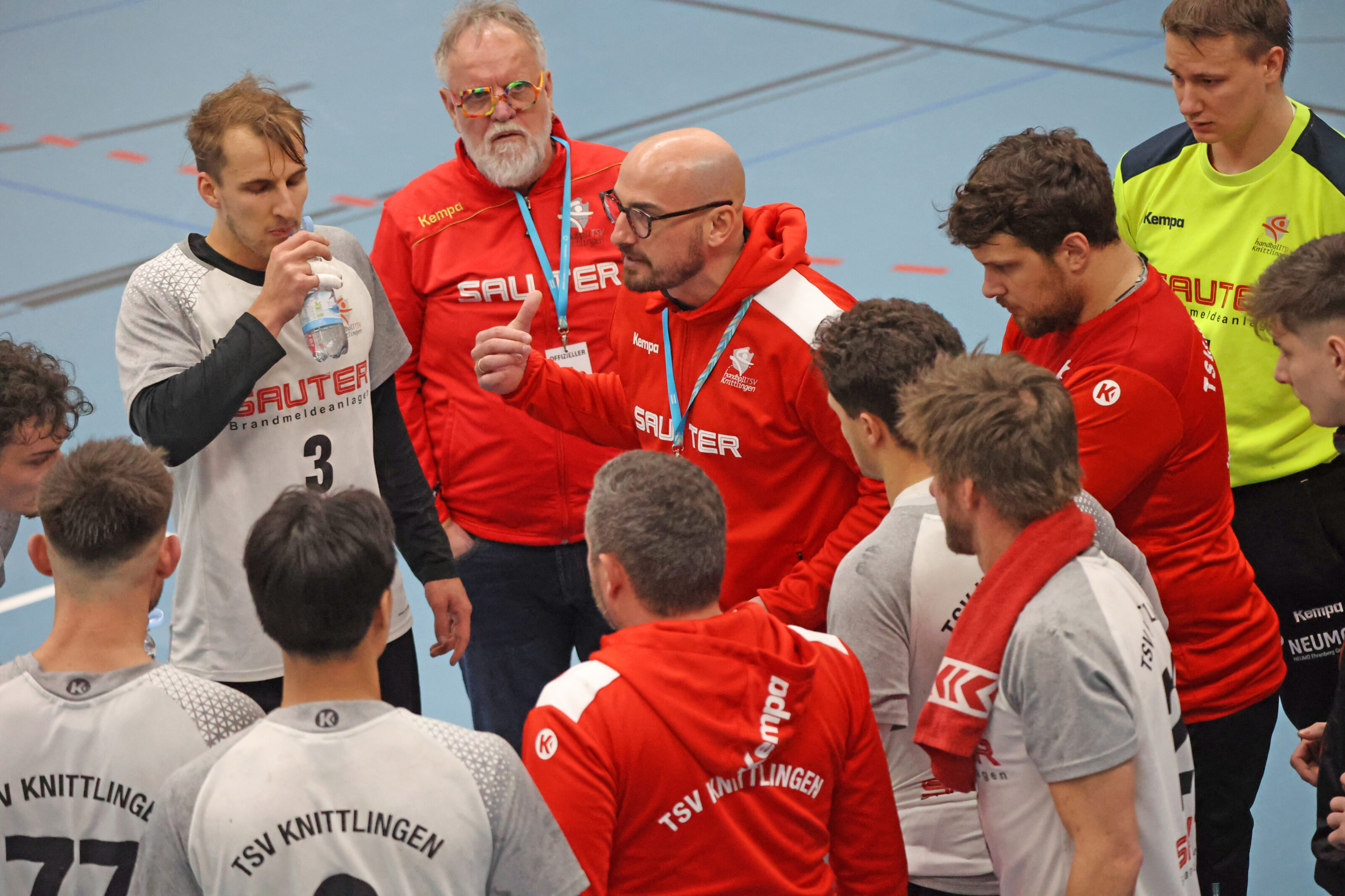 In der vollen Knittlinger Sporthalle, unter den Augen vom Stargast „Euro Eddy“ – Edgar Schmitt vom KSC, sahen die Zuschauer wieder mal Handball mit allen Höhen und Tiefen, so ganz nach dem Geschmack der Heim- wie auch der Gastmannschaft. Da war alles drin. So wie man es von einem Derby erwarten kann.
