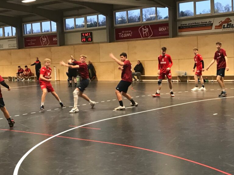 Wieder hat unsere B-Jugend ihre Klasse bewiesen und einen haushohen Sieg in der eigenen Halle erzielen können. Bis zu Mitte der ersten Halbzeit musste sich die Mannschaft finden, konnte dann klar machen, welche Mannschaft hier als Sieger vom Platz gehen würde. Nachdem unsere Abwehr die Hauptakteure unter Kontrolle hatte, ging die muntere Fahrt nur noch in eine Richtung. Mit einem 14:9 Vorsprung für die Heimmannschaft ging es in die Halbzeit.
