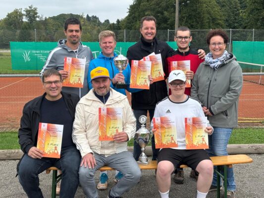 Endlich konnte nach all den Turbulenzen und nach atemberaubenden und nervenaufreibenden Spieltagen der Aufstieg gefeiert werden – einfach unglaublich Jungs! Doch euer Kampfeswillen hat sich ausgezahlt und jeder Einzelne hat zum Aufstieg beigetragen. Noch einmal ein herzliches Dankeschön an Franky und ganz viele Grüße an Nico, der immer noch in Schweden ist. Im Tennisjahr 2023 spielten: Noah Kesselbach, Felix Kesselbach, Nico Burmistrak, Pascal Schückle, Niklas Hossak, Michael Suedes und Franky. Letztendlich kann die Saison so zusammengefasst werden: Alle guten Dinge sind drei (im Tennis): Aufstieg Herren, Aufstieg Herren 30 und die U15-Mixed-Mannschaft ist Gruppensieger in der Verbandsspielrunde!