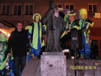 Beim Straßenfasching 2012 ließen die Guggenmusiker „Gasse Fäger“ und Lokalmatador Crazzy Joe die Stimmung vor dem Knittlinger Rathaus kräftig hochkochen.
